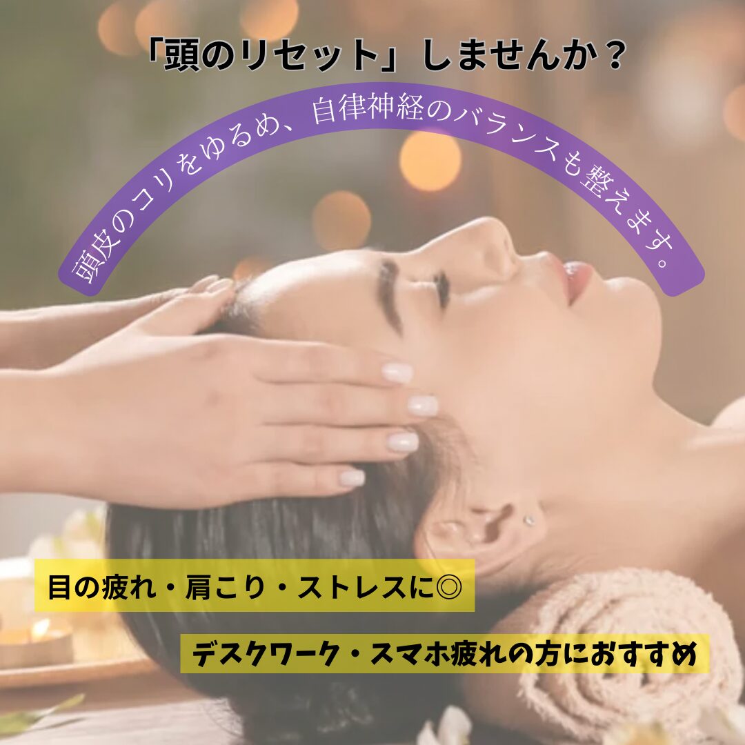 長時間のデスクワークやスマホ操作で凝り固まった頭・首・目元まわりをスッキリ整えます。